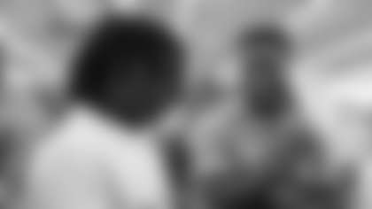 LB Jonathan Casillas spoke to students at Charles Borromeo Elementary. Rotolo's provided pizza for the event.